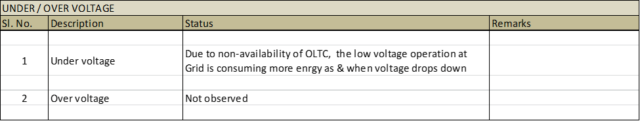 - Incoming voltage condition, PF, load management, distribution loss